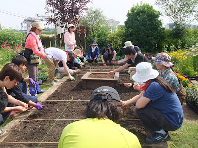今回は、ひと区画に5株づつ植え来月に、植物の生育状況を観察します。