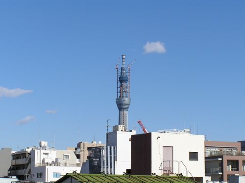 冒頭の写真は、E&Gアカデミーの外階段から見た、平成23年1月7日現在の東京スカイツリーの姿です。当初は、2011年12月竣工予定でしたが、外観を見る限りは、本体部分は、殆ど完成している様子。いよいよ前人未踏の500mを超える高所での作業が開始するということです。